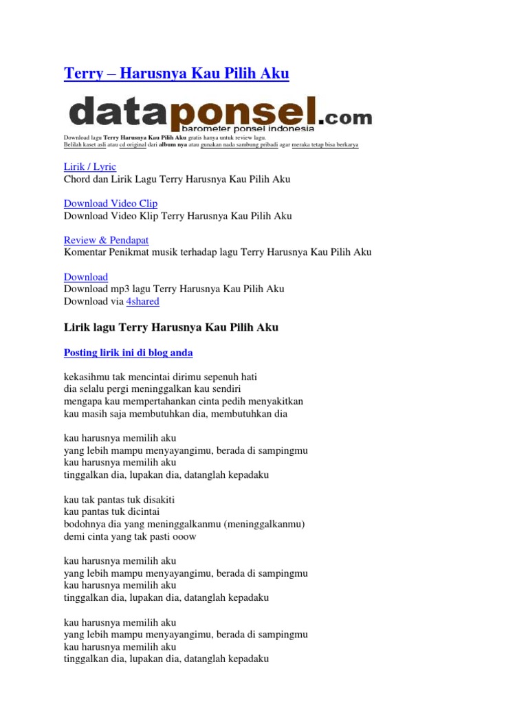 Download Lagu Terry Harusnya Kau Pilih Aku Download Lagu Terry Harusnya Kau Pilih Aku - Are you see now top 10 terry harusnya kau pilih aku mp3 results on the web.