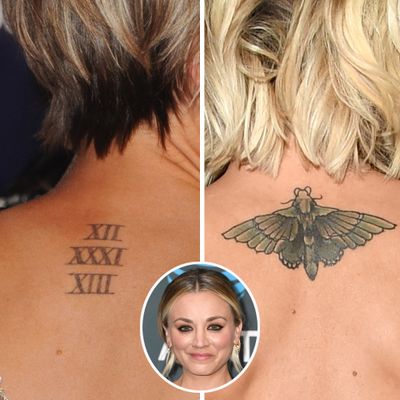 Kaley Cuoco Moth Tattoo Kaley Cuoco Moth Tattoo / Cuoco had the giant roman numerals of their wedding date covered up with what looks like a giant butterfly tattoo.